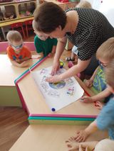 Итогом занятия стала творческая коллективная работа с элементами рисования "Хоровод дружбы".