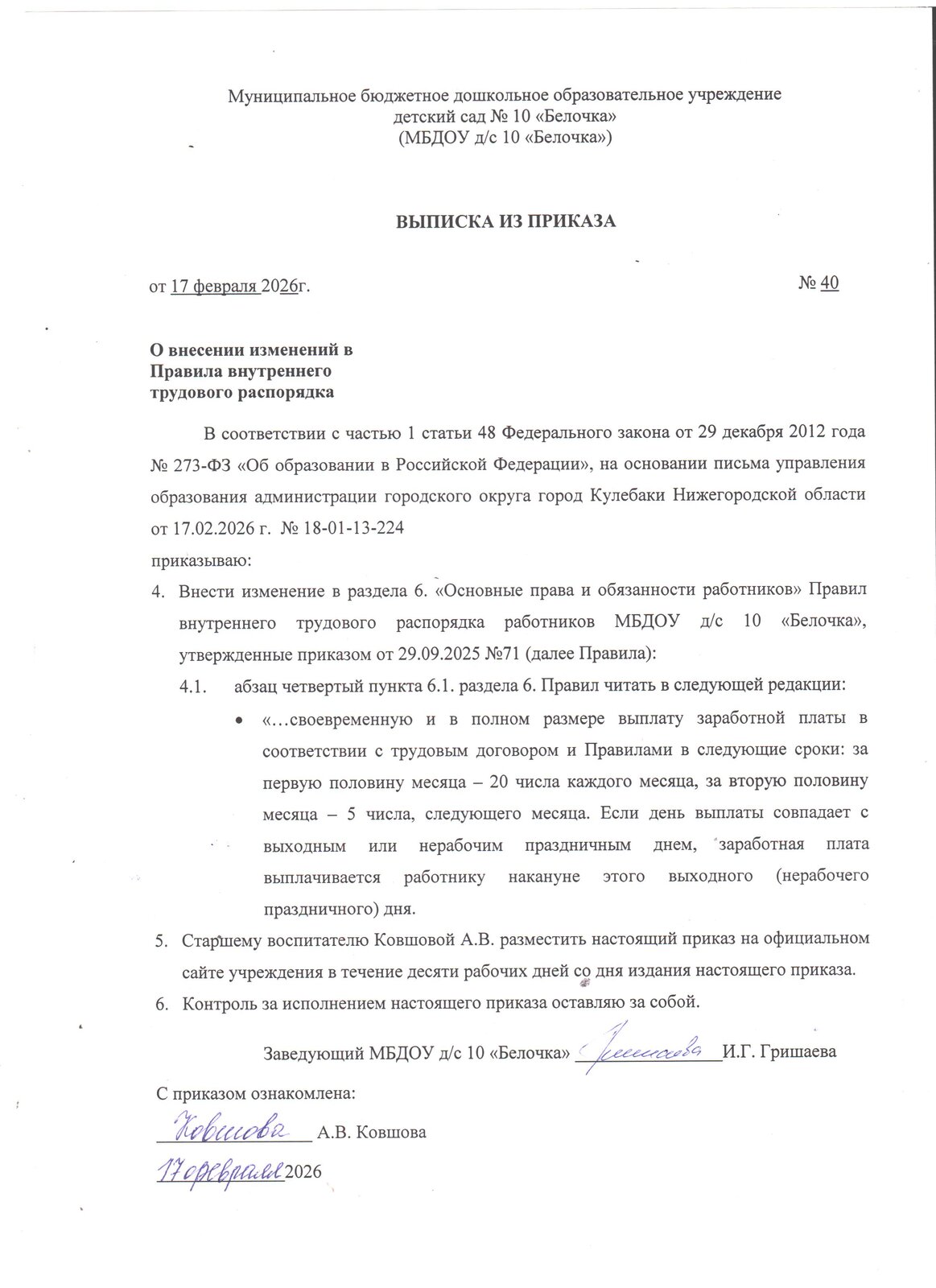 Правила внутреннего трудового распорядка